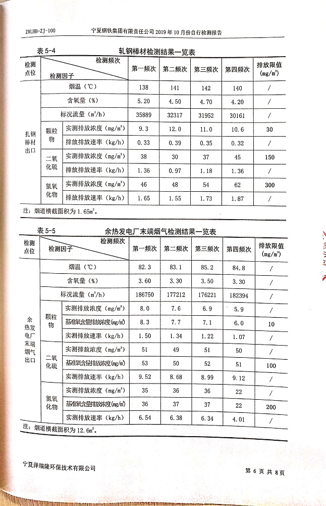 寧鋼2019年10月份自行檢測報告