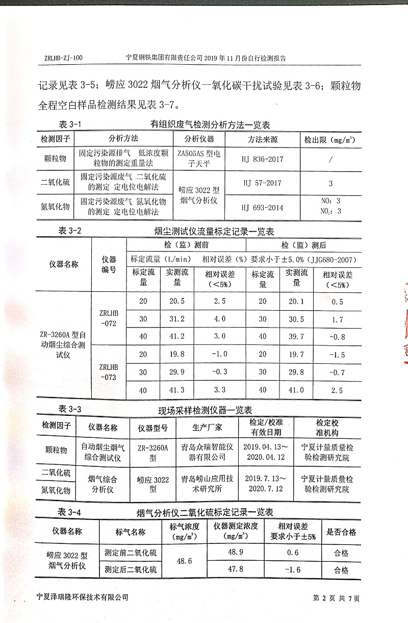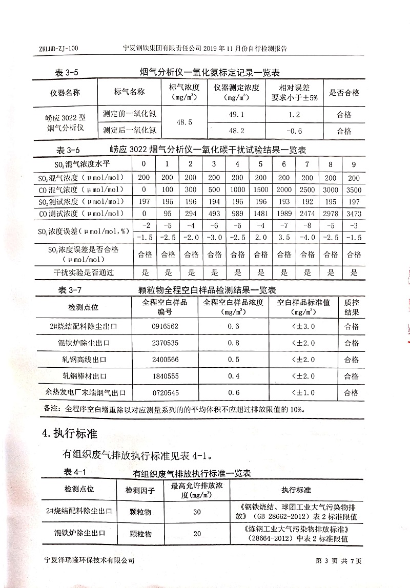 寧鋼2019年11月份自行檢測(cè)報(bào)告