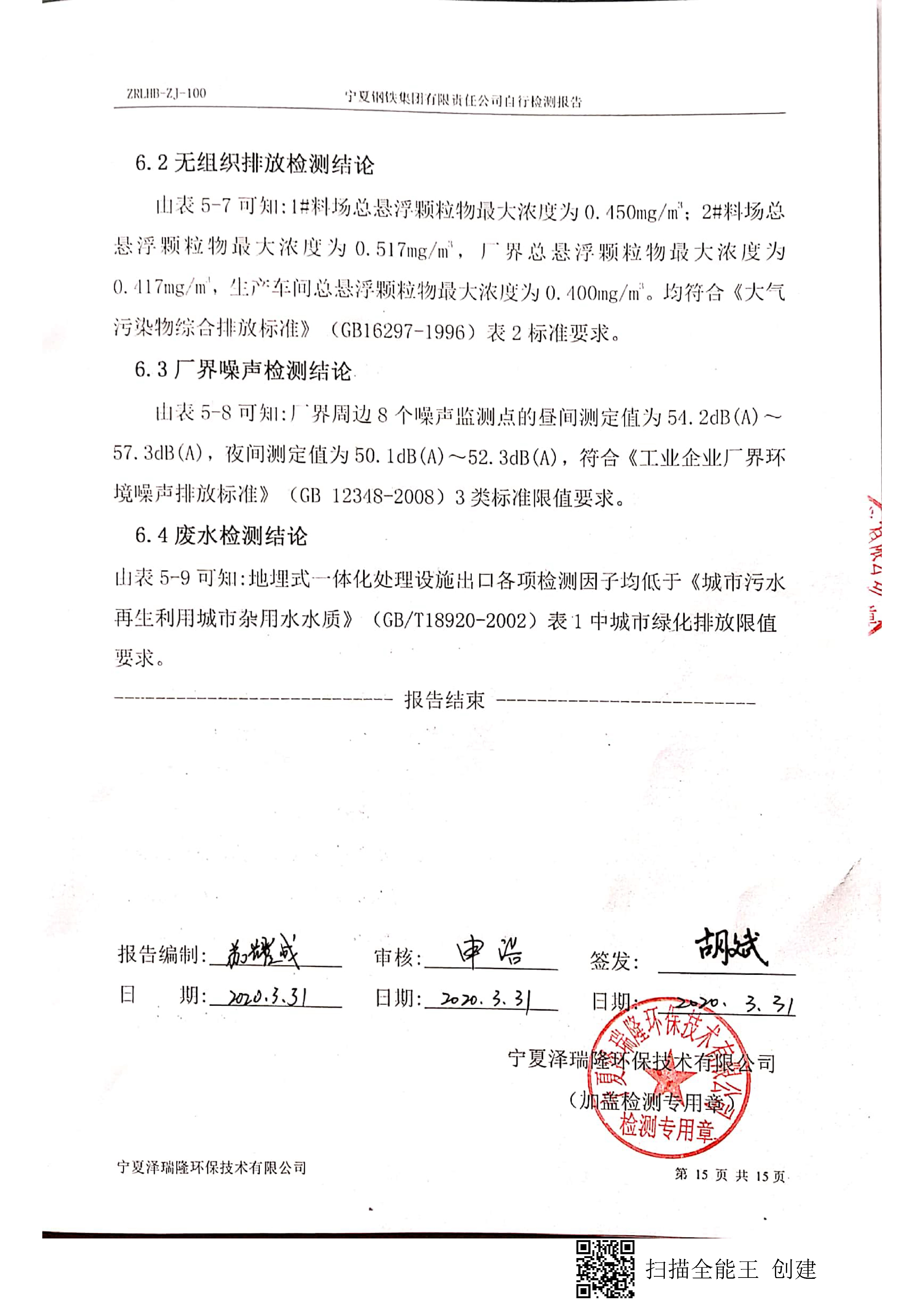 寧鋼2020年3月份自行檢驗報告