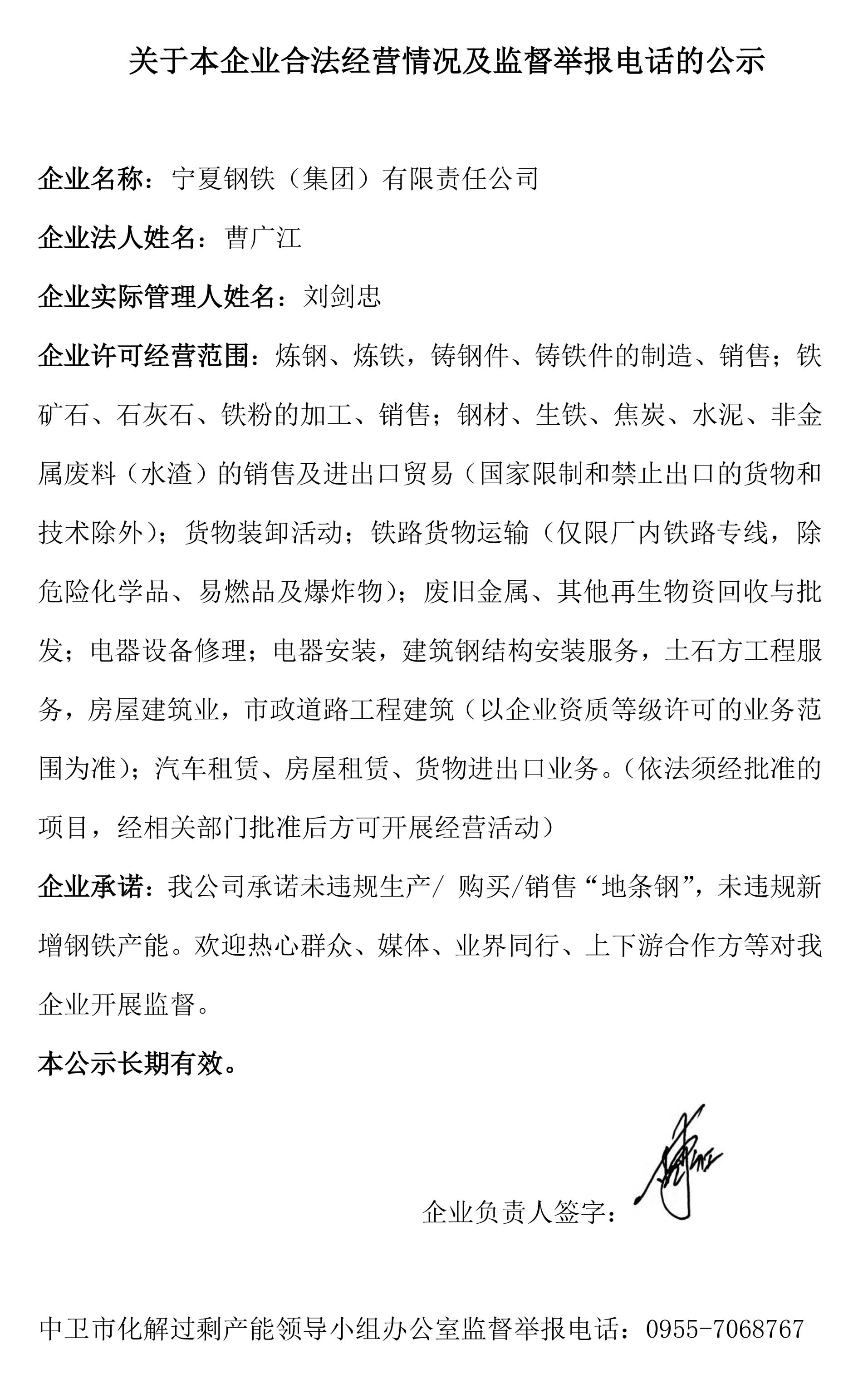 關(guān)于本企業(yè)合法經(jīng)營(yíng)情況及監(jiān)督舉報(bào)電話的公示