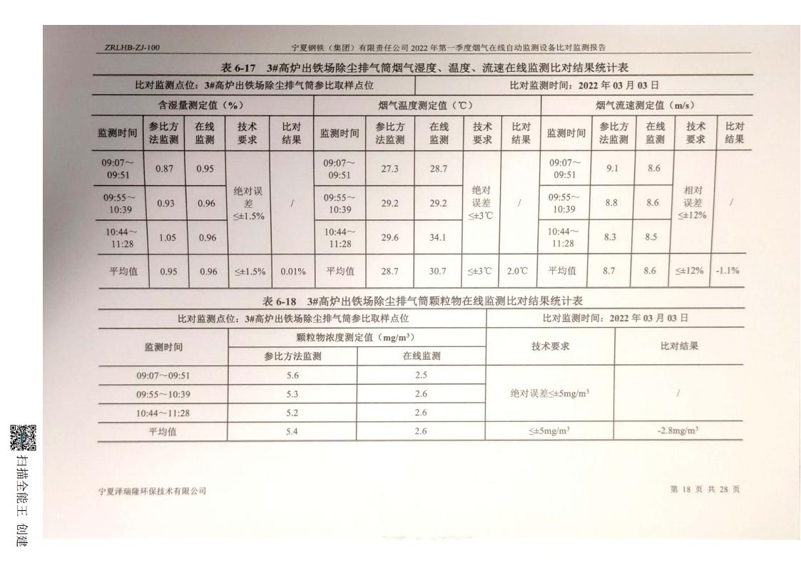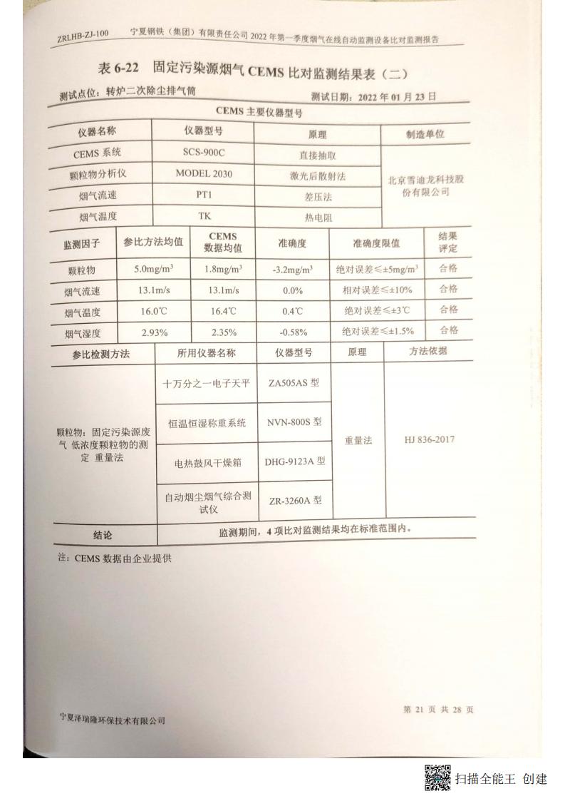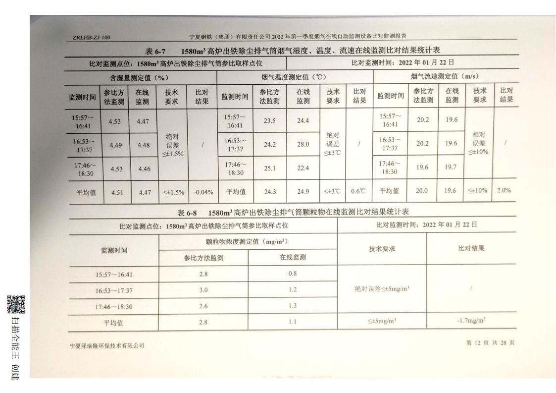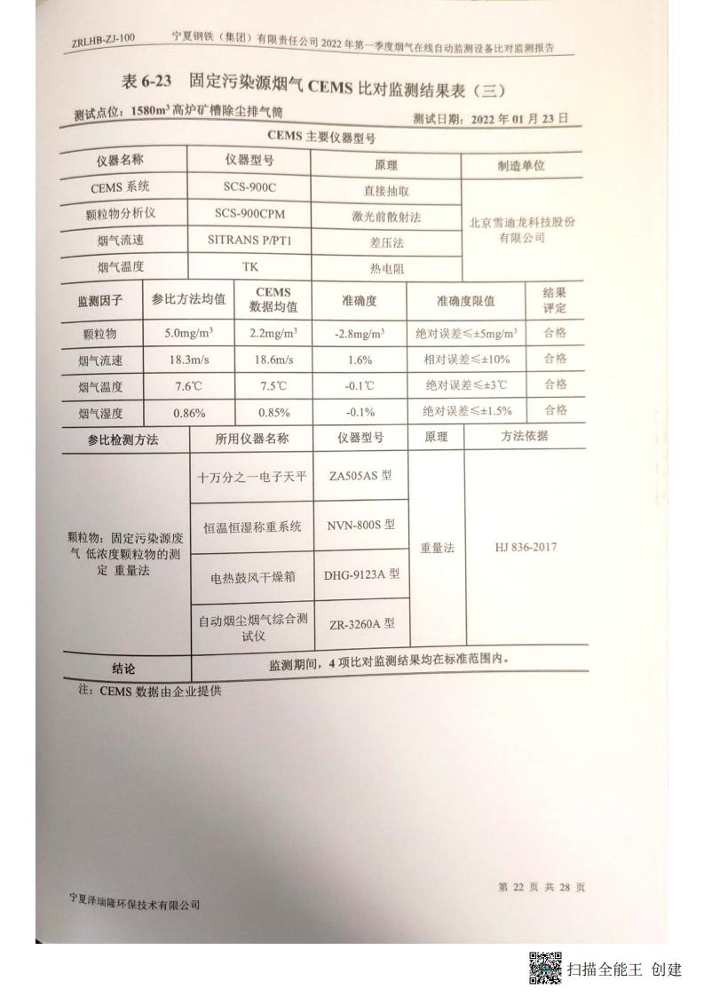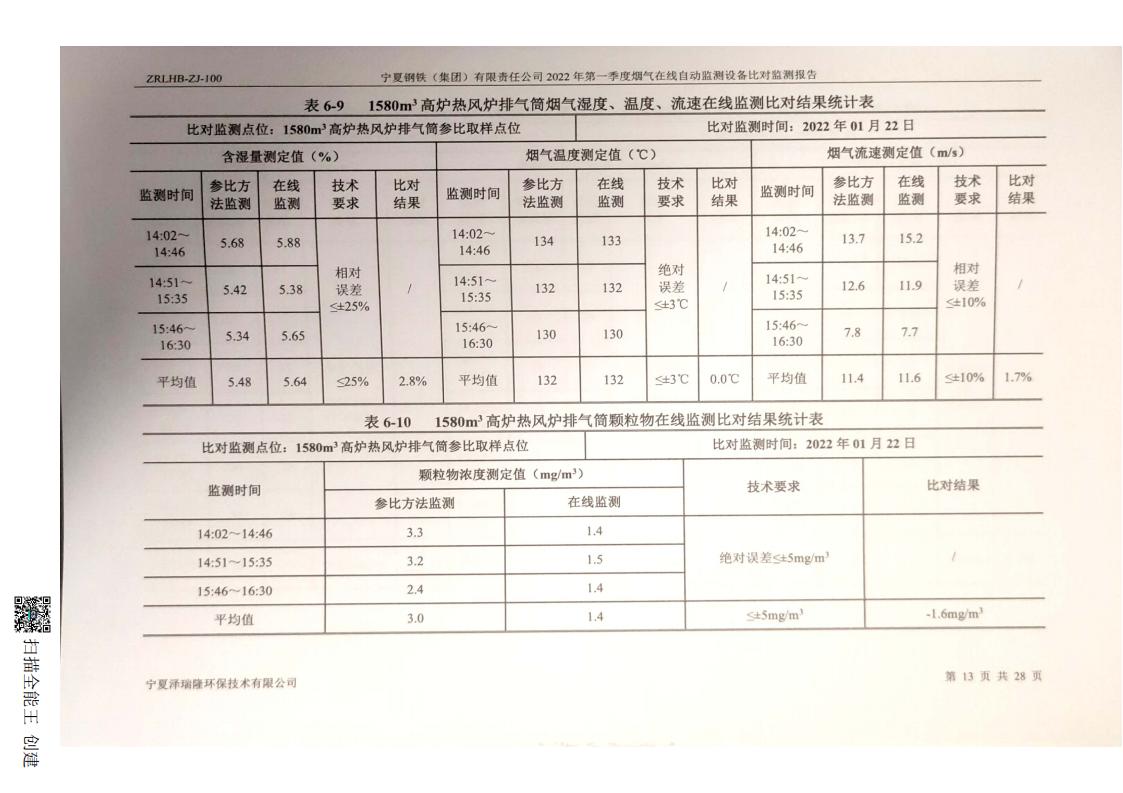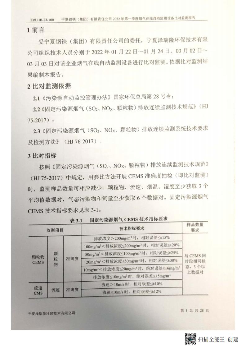 2022年第一季度煙氣在線自動監(jiān)測設(shè)備比對監(jiān)測報(bào)告
