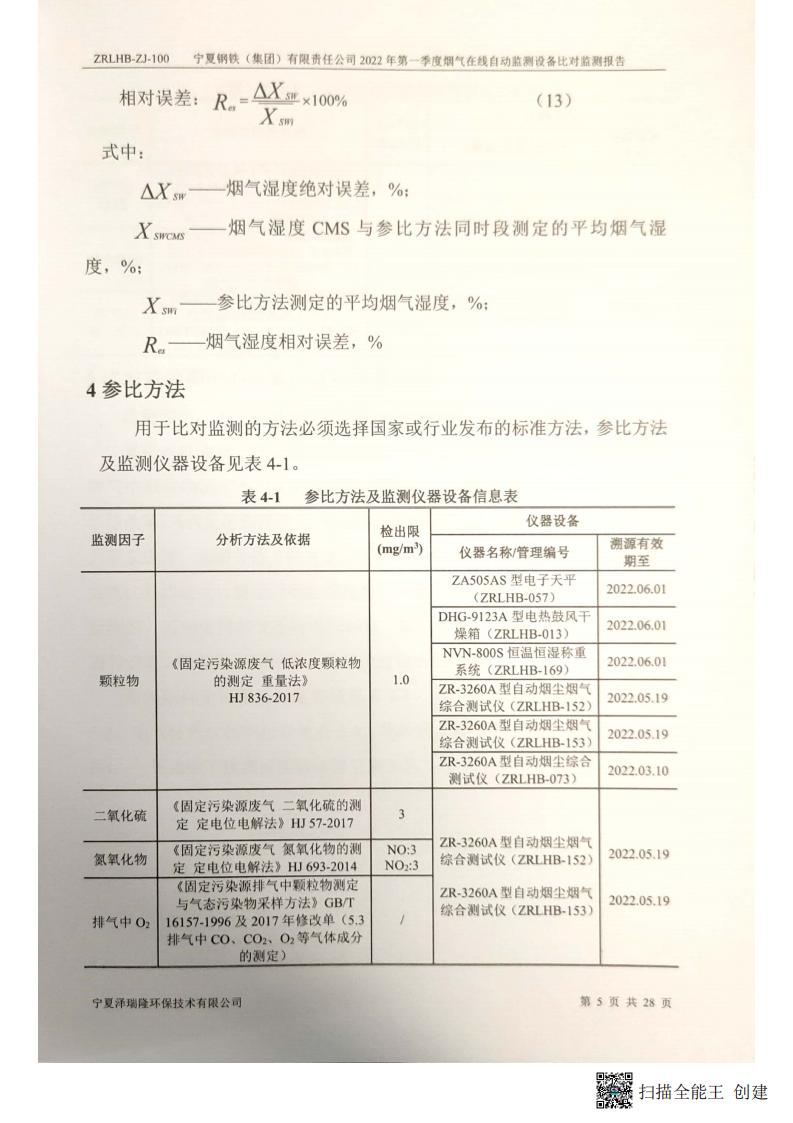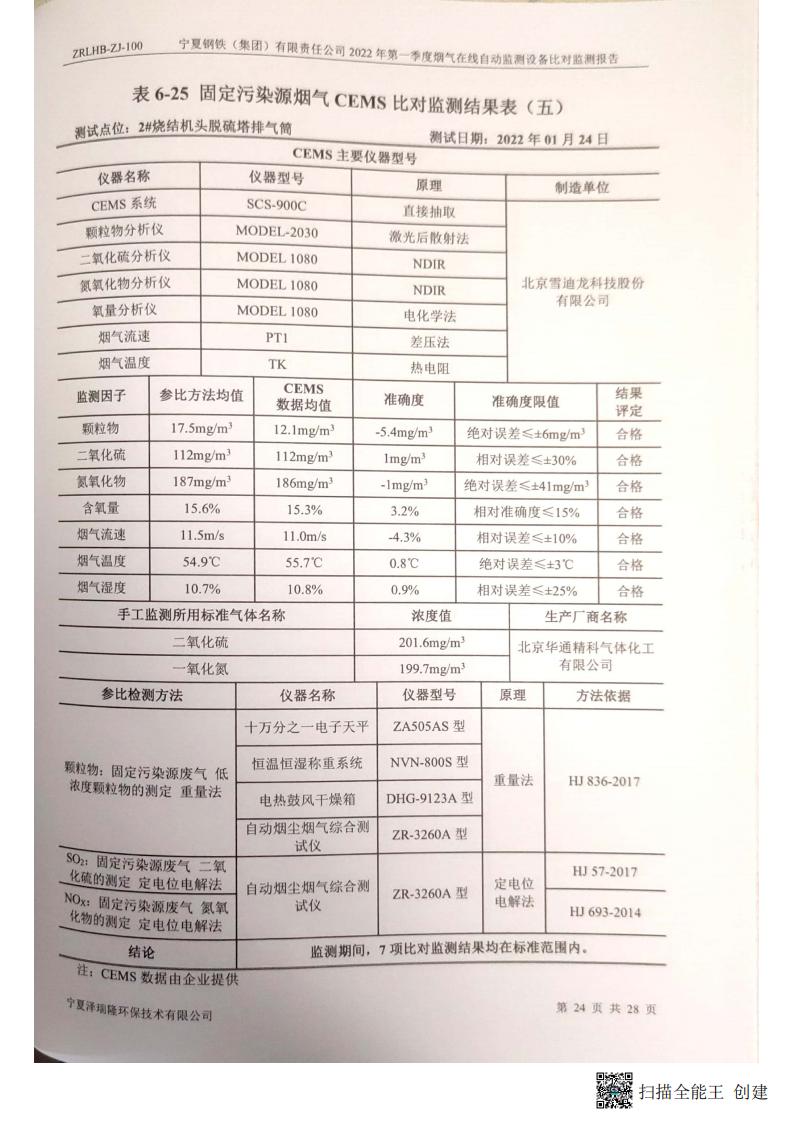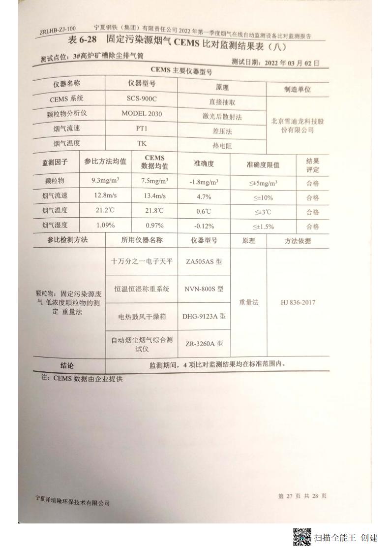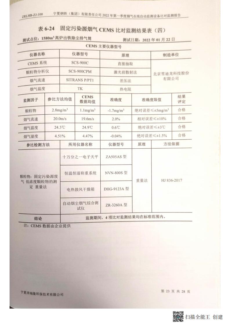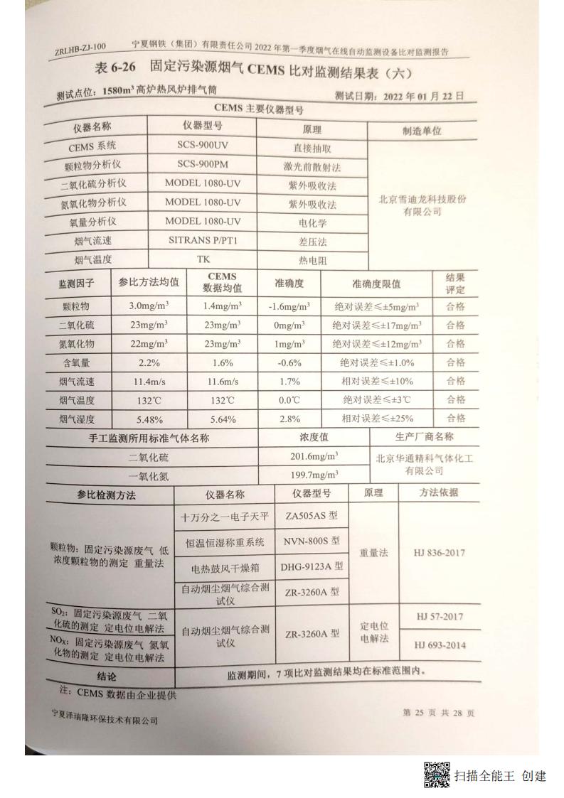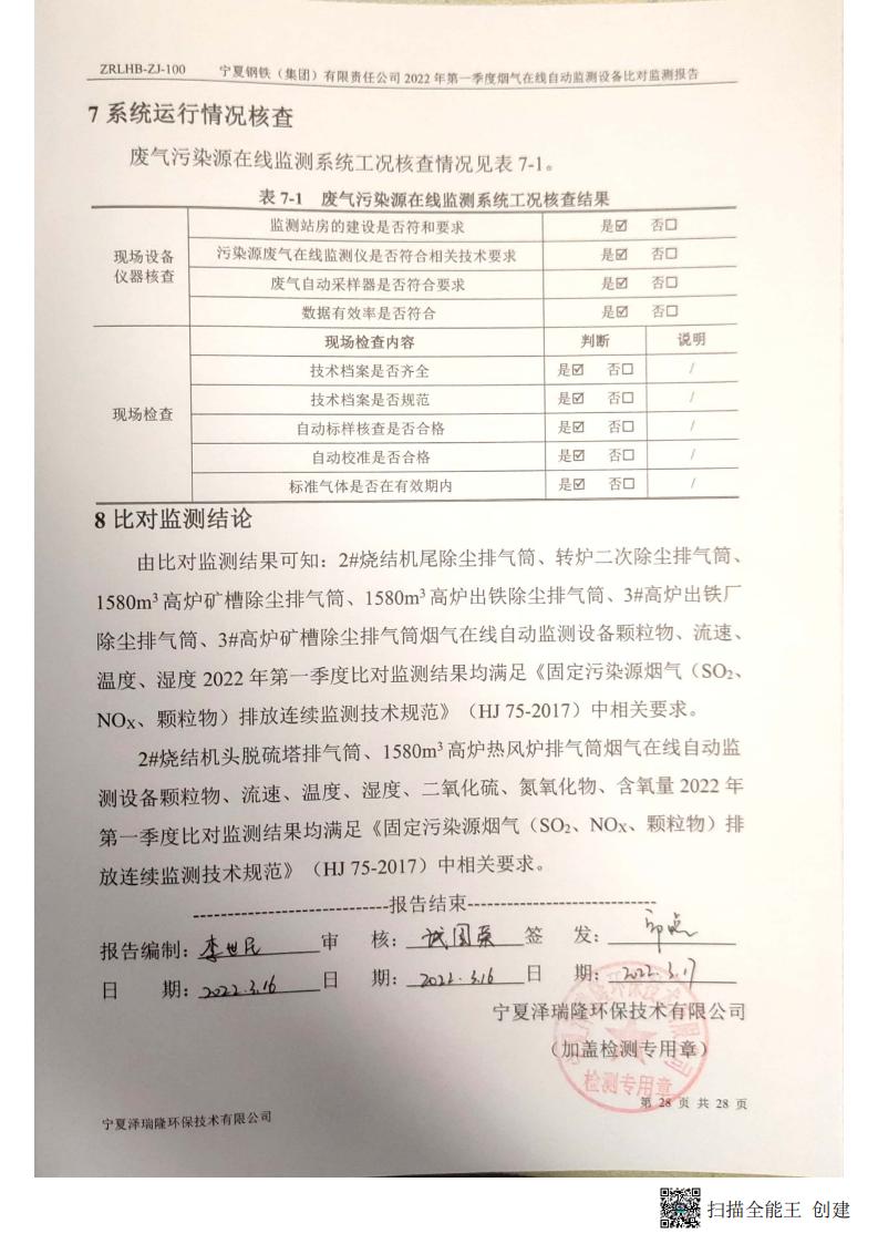 2022年第一季度煙氣在線自動監(jiān)測設(shè)備比對監(jiān)測報(bào)告