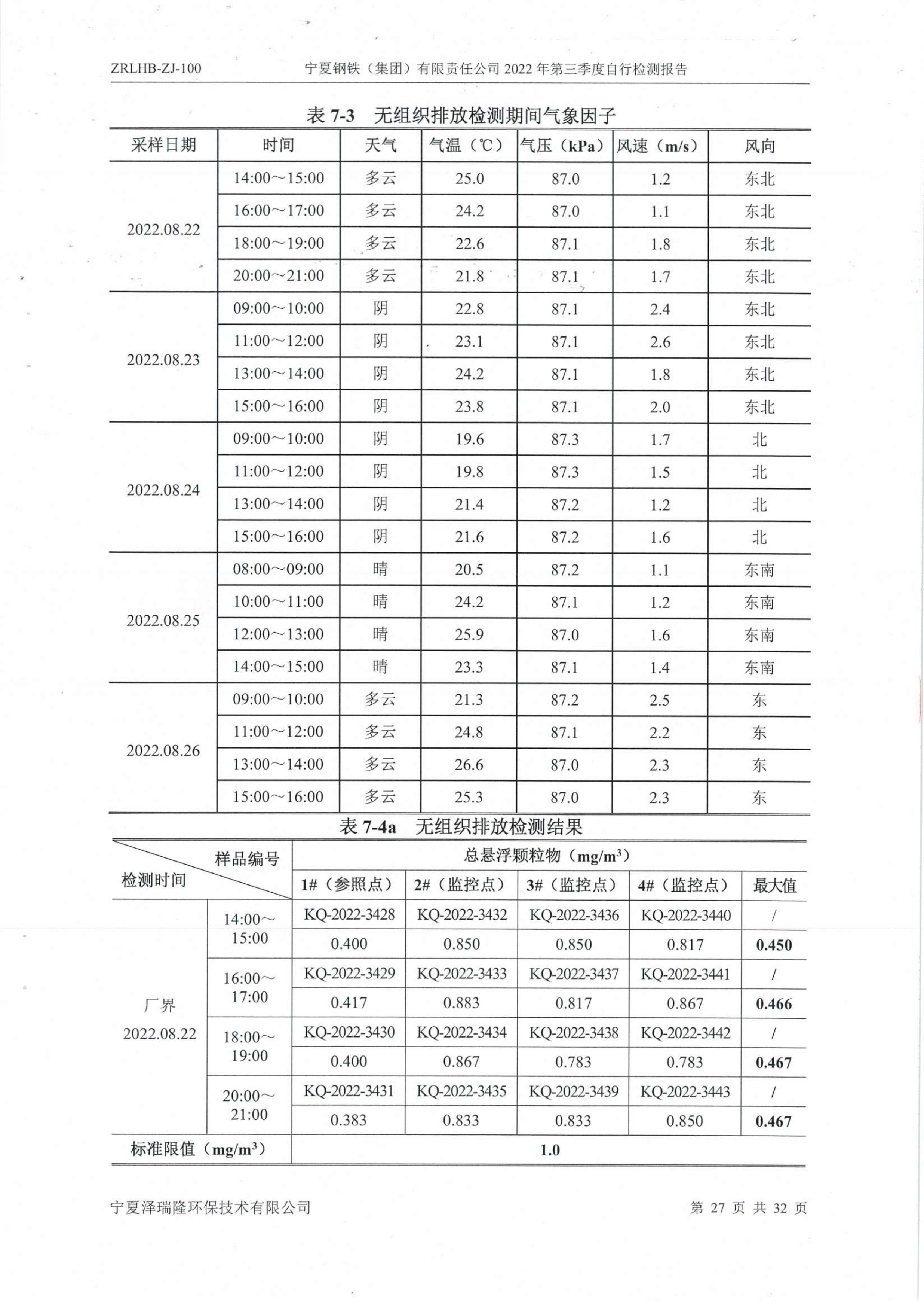2022年第三季度自行監(jiān)測(cè)報(bào)告