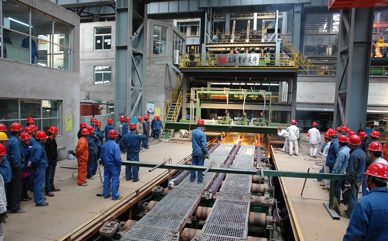寧鋼公司煉鋼廠 熱負荷試車成功,順利鑄出寧鋼第一支鋼坯。