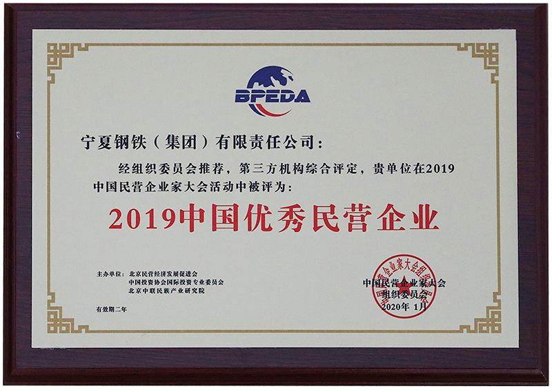 2019年度全國優(yōu)質(zhì)建筑用鋼品牌·創(chuàng)新發(fā)展獎