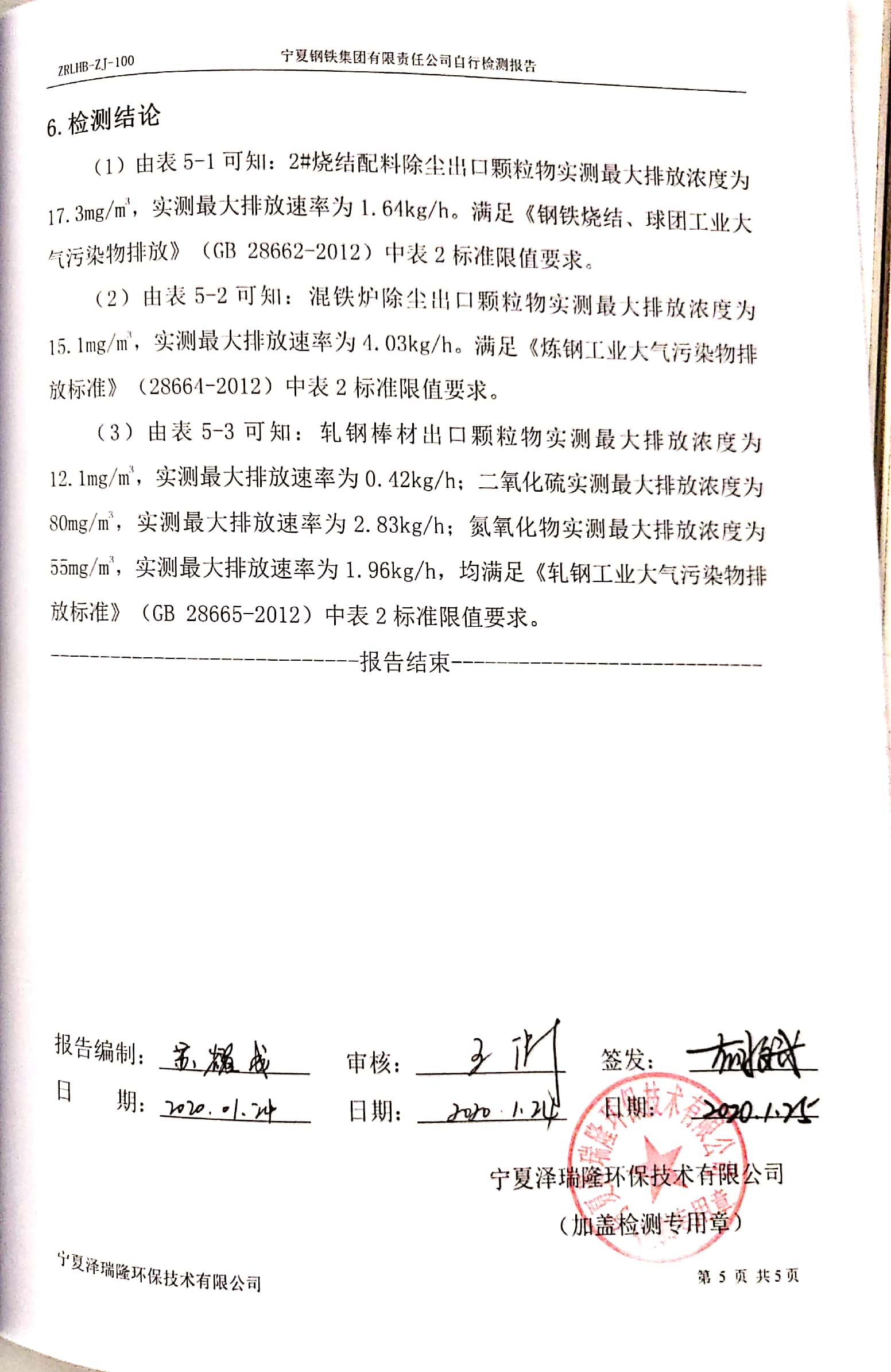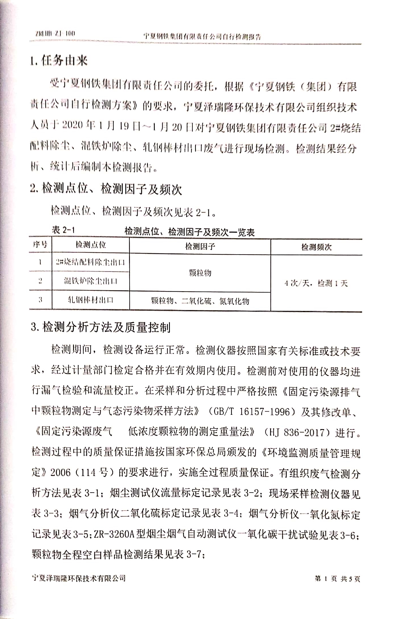 寧鋼2020年1月份自行檢驗報告