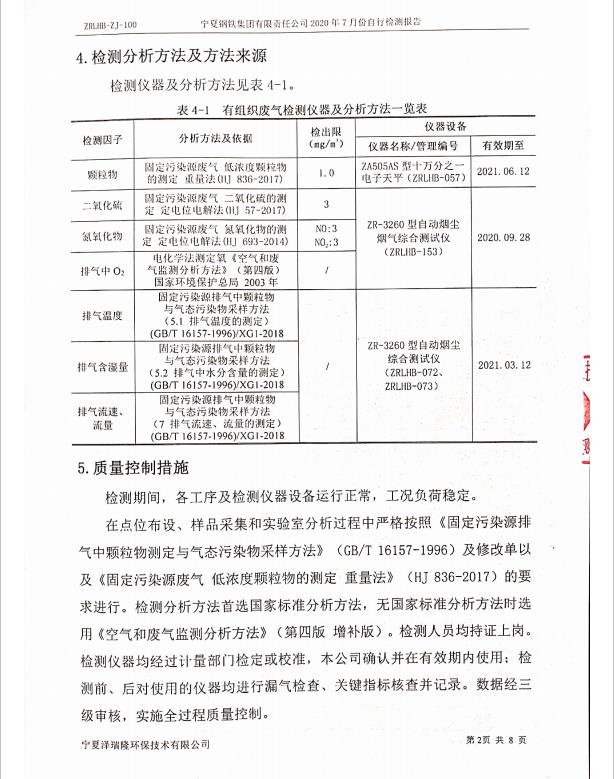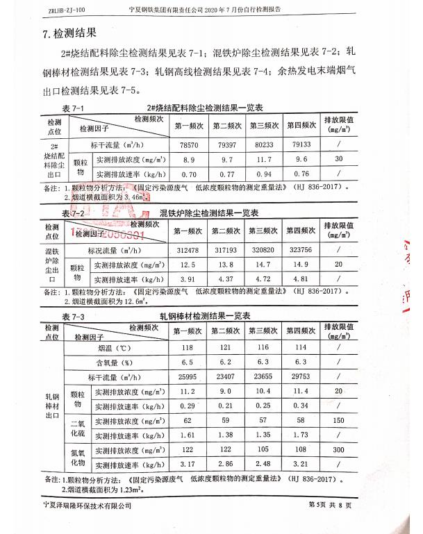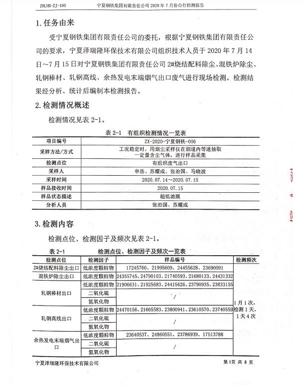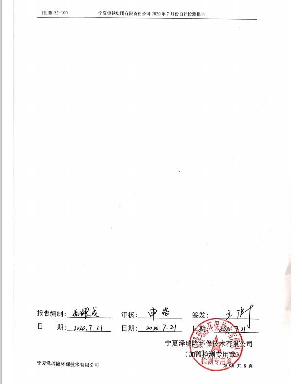 寧鋼2020年7月份檢測(cè)報(bào)告