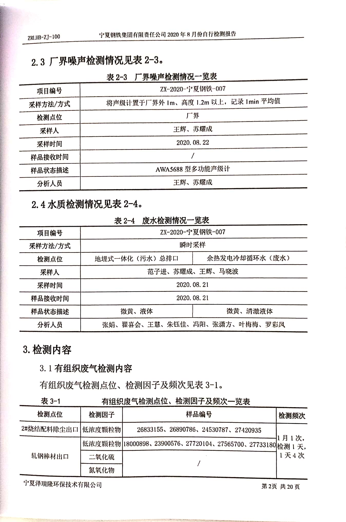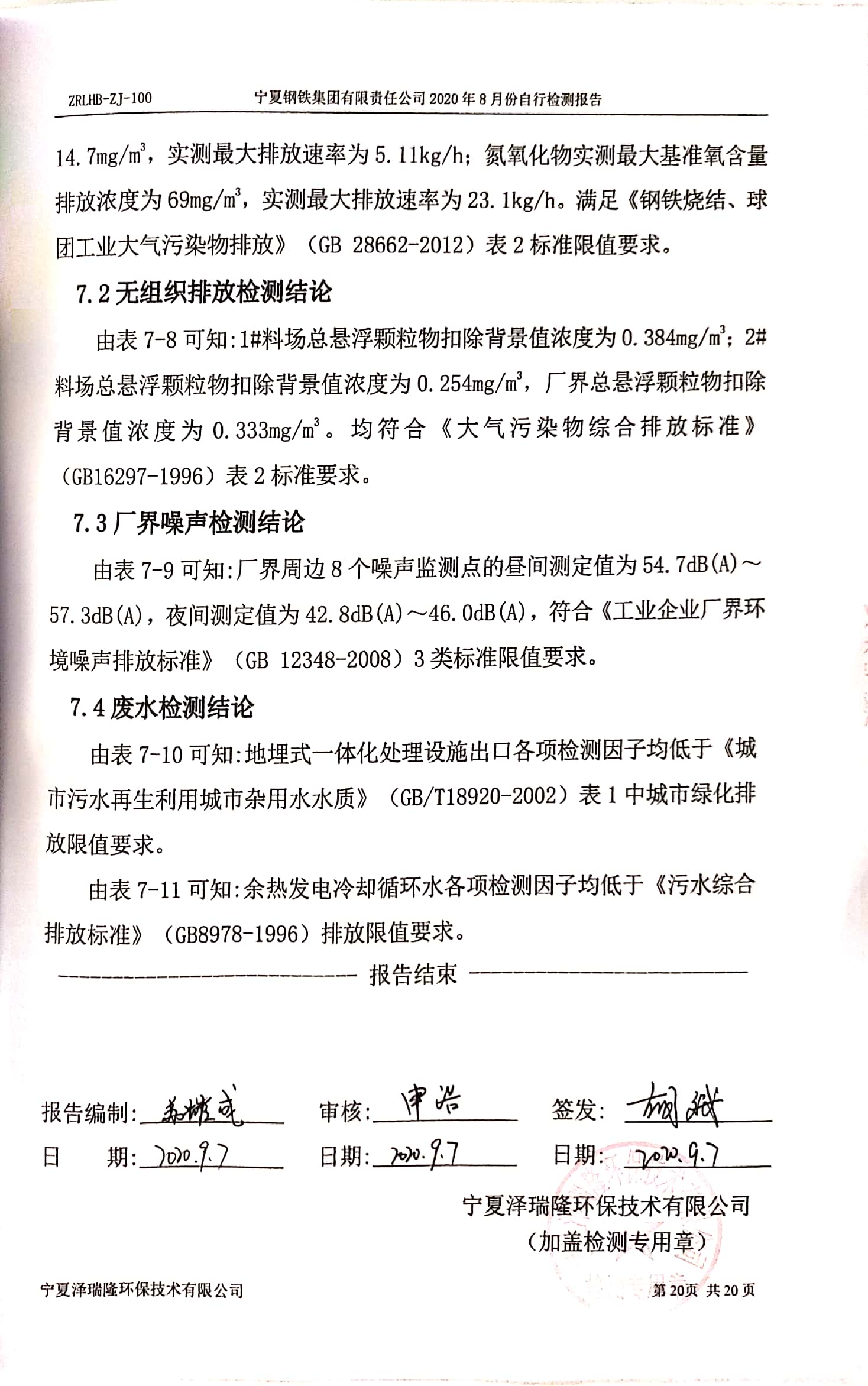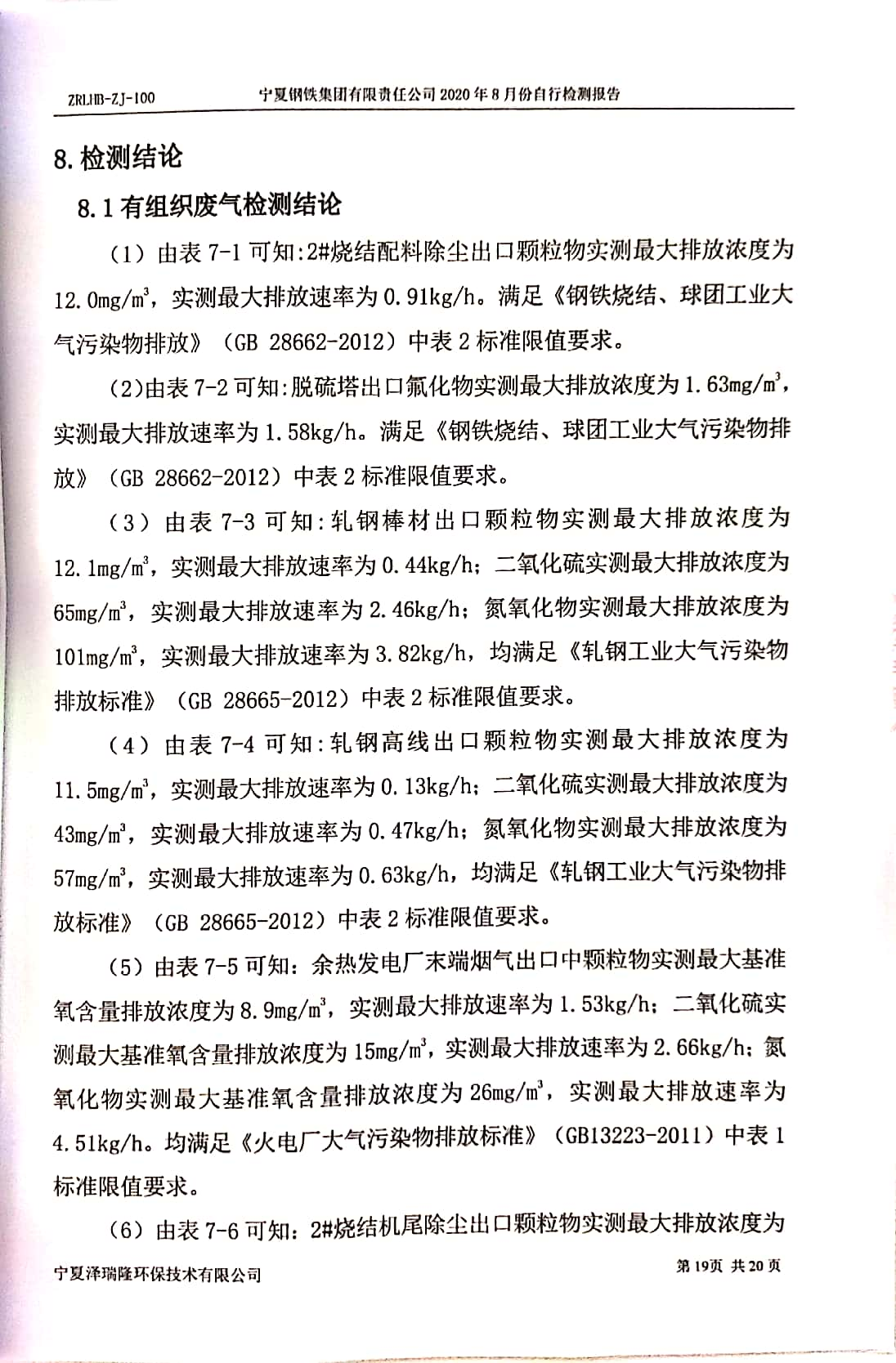 2020年8月自行檢測(cè)報(bào)告