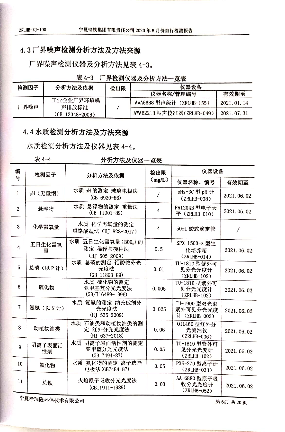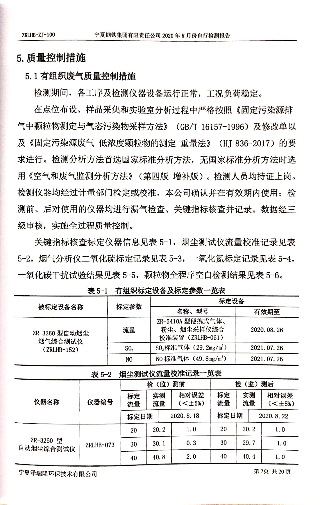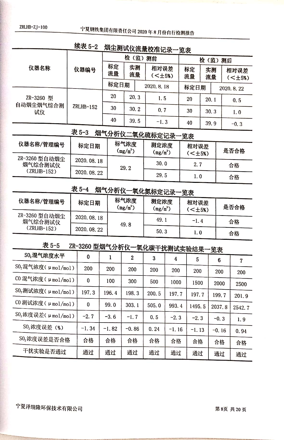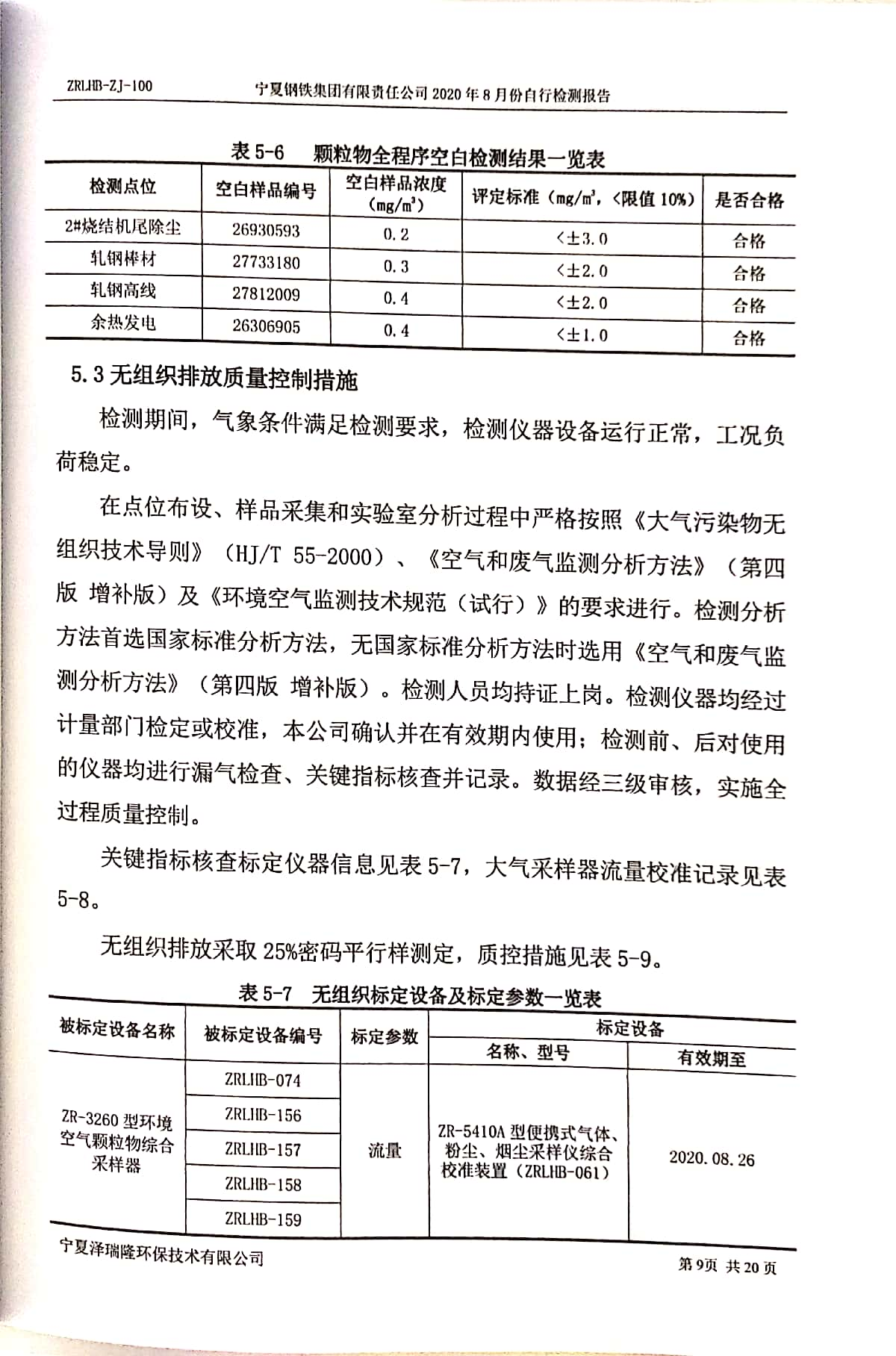 2020年8月自行檢測(cè)報(bào)告