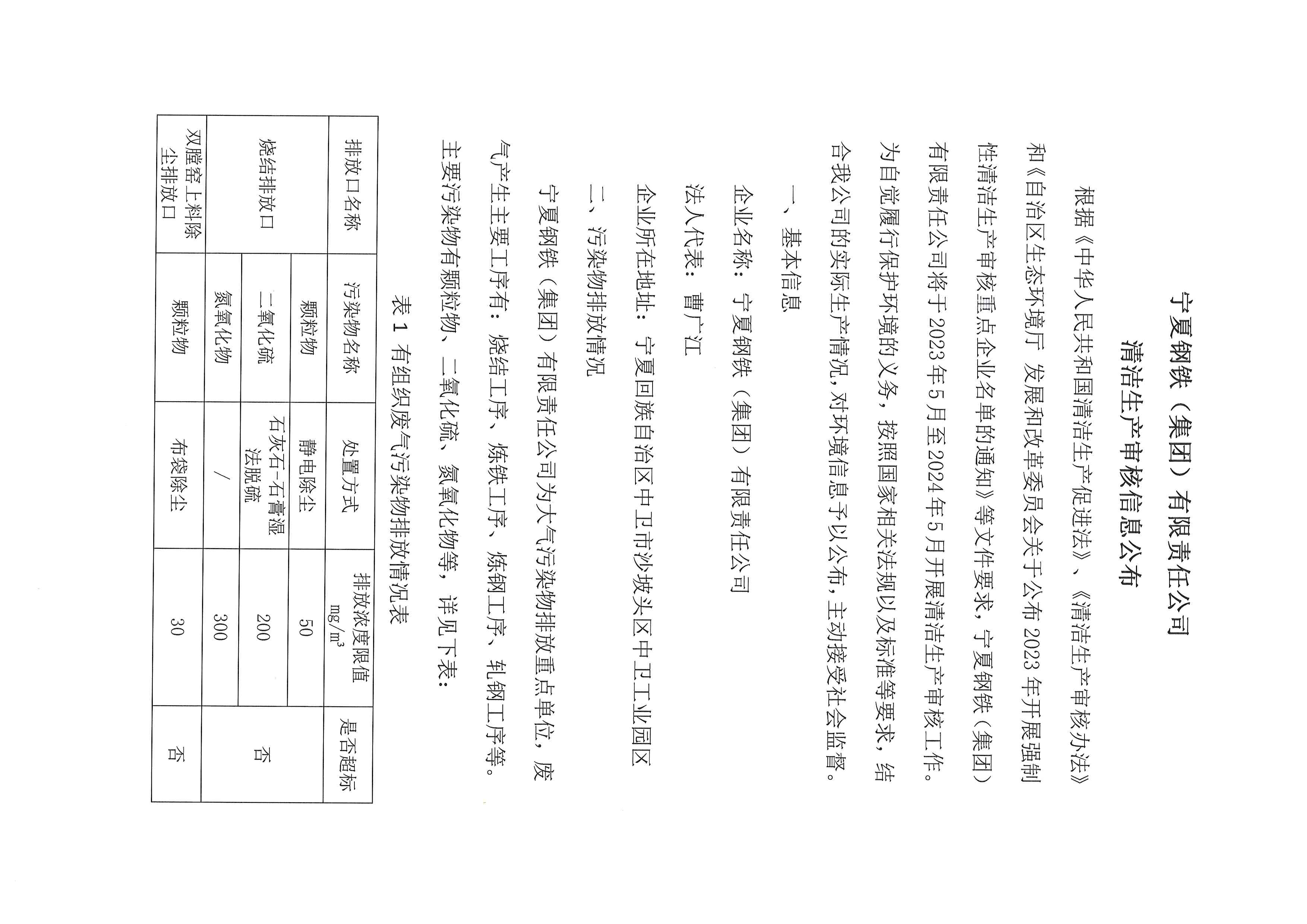 寧夏鋼鐵(集團(tuán))有限責(zé)任公司清潔生產(chǎn)審核信息公布