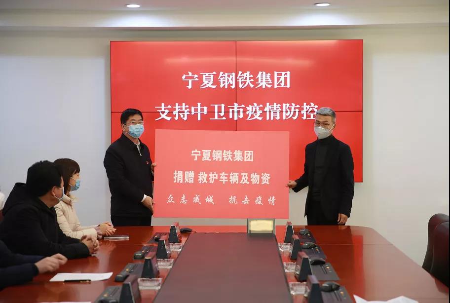 1月28日,寧夏鋼鐵集團(tuán)向中衛(wèi)市捐贈(zèng)了價(jià)值200萬(wàn)元的4輛救護(hù)車及600套鋪蓋、55臺(tái)電暖氣、55個(gè)電熱水壺、6萬(wàn)元的方便面和礦泉水等物資,第一時(shí)間支援中衛(wèi)市新型冠狀病毒肺炎防控抗擊工作。